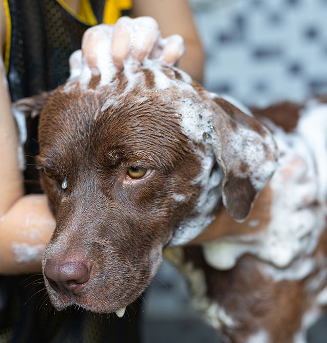 Beim Baden achte ich immer auf die richtige Temperatur und die richtigen Pflegeprodukte. Damit das Fell schonend sauber und das Ergebnis sehr gut wird, verwende ich in meinem Hundesalon ausschließlich Markenprodukte des bekannten Shampoo-Herstellers PSH Petcare. Diese Produkte werden ohne Tierversuche hergestellt und sind auf einer kosmetischen Basis. Je nach Fell- und Hauttyp erhält Ihr Hund ein individuell ausgesuchtes Shampoo.